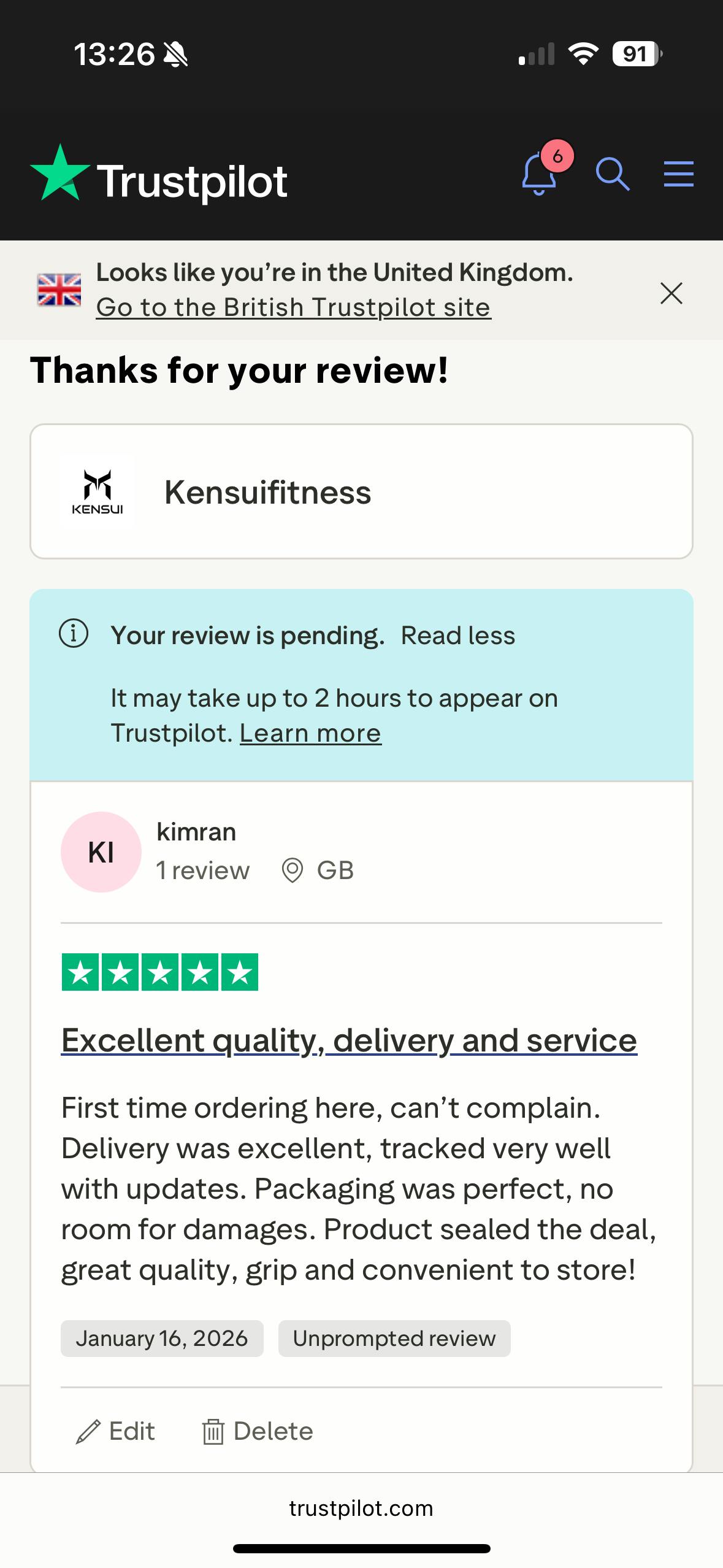 First time ordering here, can’t complain. Delivery was excellent, tracked very well with updates. Packaging was perfect, no room for damages. Product sealed the deal, great quality, grip and convenient to store!